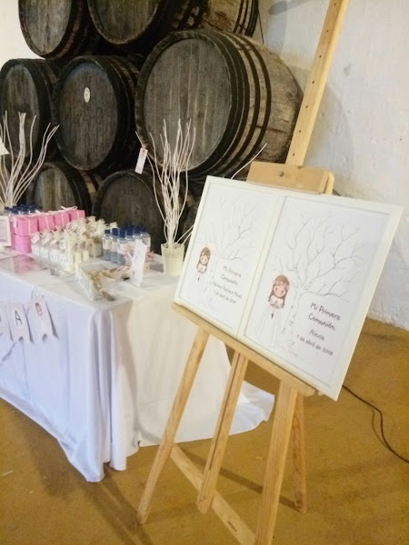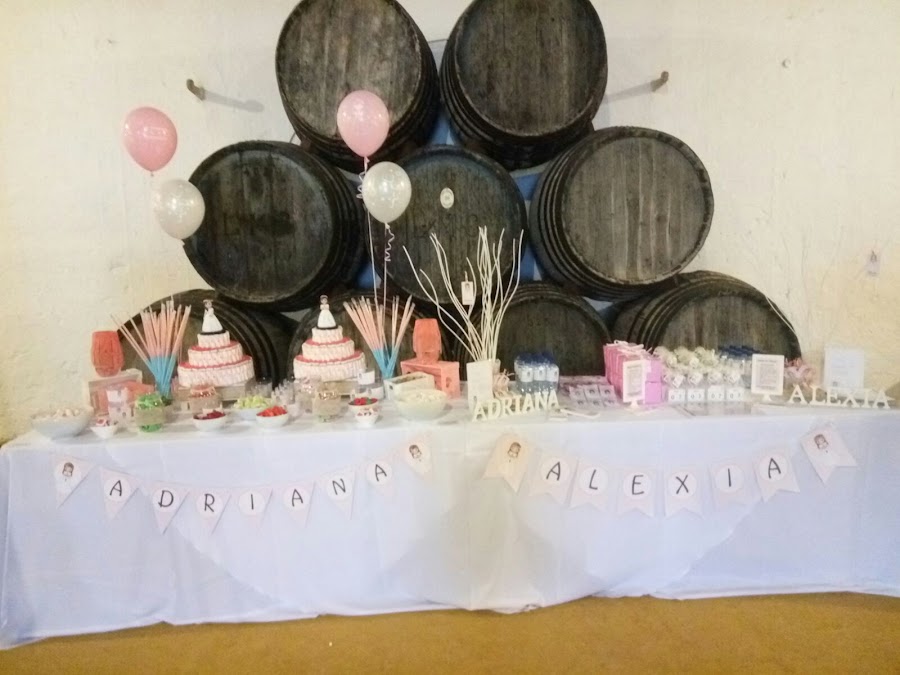 Y tengo que agradecer a Encarni que me enviase fotos de sus bonitas mesas decoradas incluyendo todo aquello que yo preparé, así que aquí os dejo una muestra para que veáis lo bien que queda todo y de camino, podáis ver el trabajo de Coco Eventos ;-)
