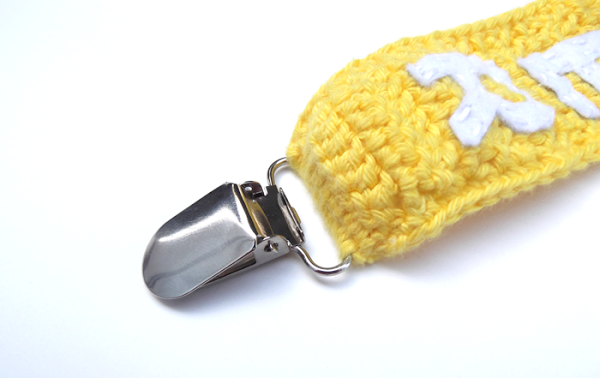 El chupetero es personalizable, por lo que podrás optar por poner el nombre del peque en fieltro, colocar una aplicación a ganchillo con la forma que desees...