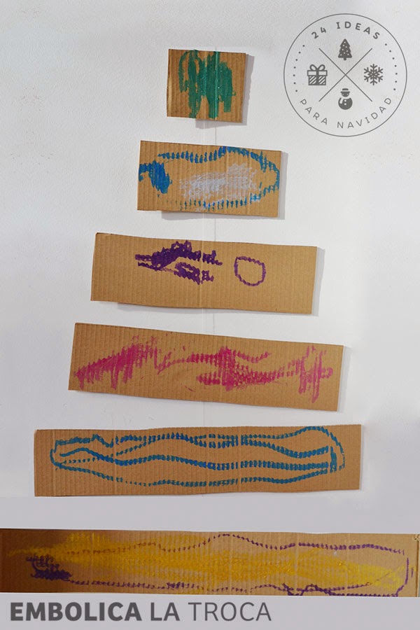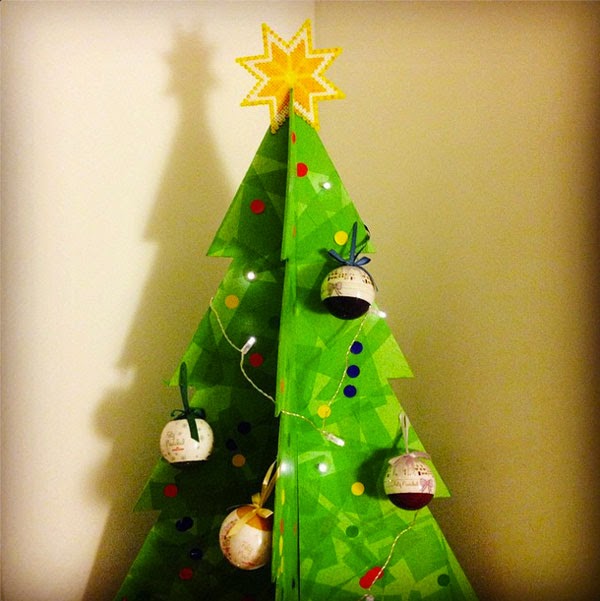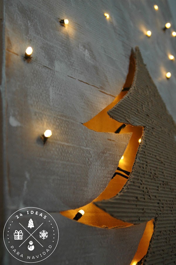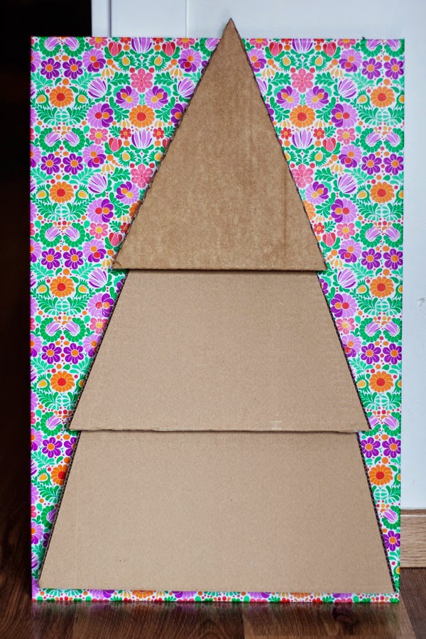 Luego solo tenéis que encontrar la superficie adecuada para pegar vuestro árbol, en la pared, o, como he hecho yo, en otro cartón forrado de vinilo estampado. Y ya lo podéis decorar.