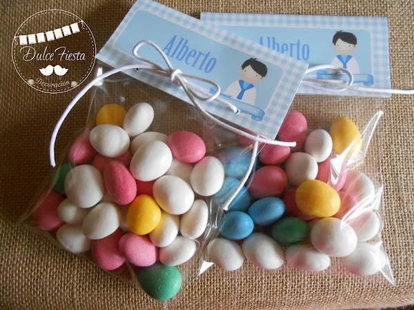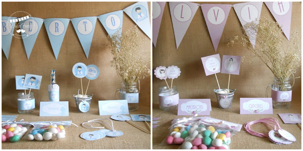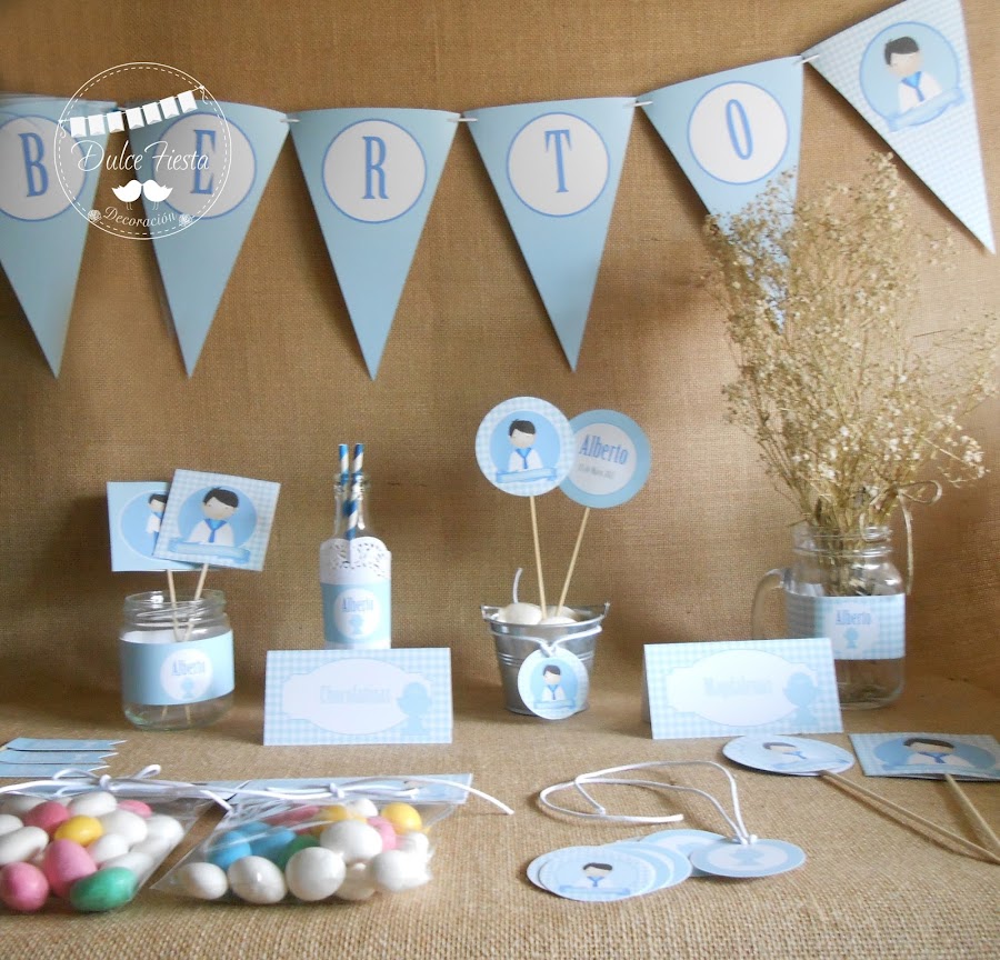 La decoración que ahora os presento, es para organizar una mesa dulce o celebración de Primera Comunión, tanto de niño como de niña.