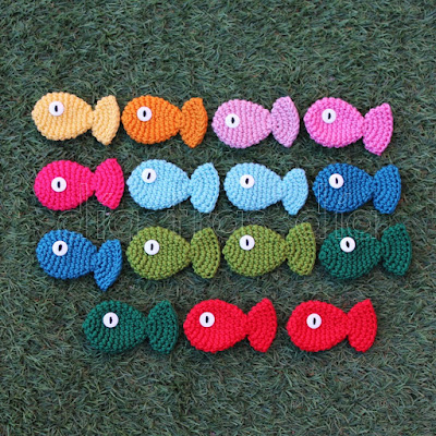 Me encargó unos broches con forma de peces de colores variados que resultan muy simpáticos y más aún cuando se ven todos juntos, ya que crean una combinación muy colorida: