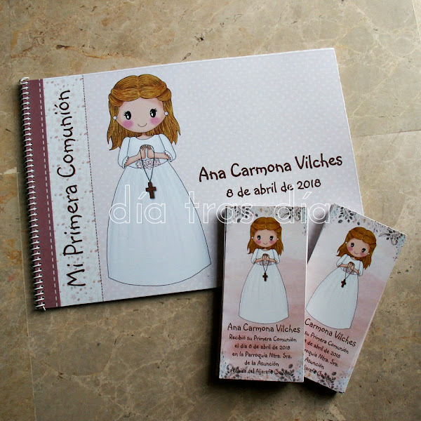 Teresa, una de mis compañeras del grupo de crochet, me pidió hace algún tiempo que le hiciera los recordatorios para la Primera Comunión de su sobrina Ana. Y también quiso que preparara para ella un libro de firmas, para que pudiera recoger en él todos los momentos bonitos de ese día.
