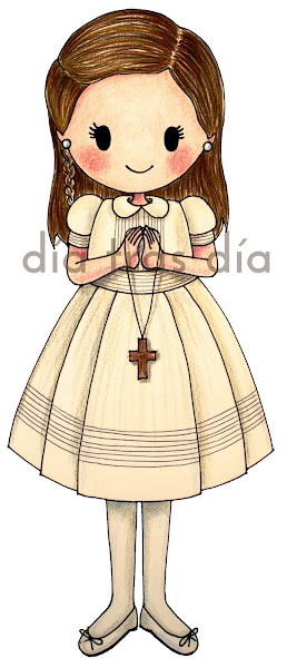 En esta ocasión me ha encantado hacer el dibujo de Blanca porque tenía un detalle que la hacía totalmente diferente de los otros dibujos personalizados que he realizado: el vestidode Primera Comunión, en este caso, era corto.