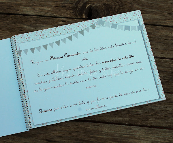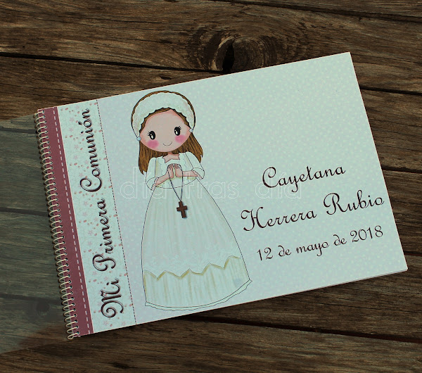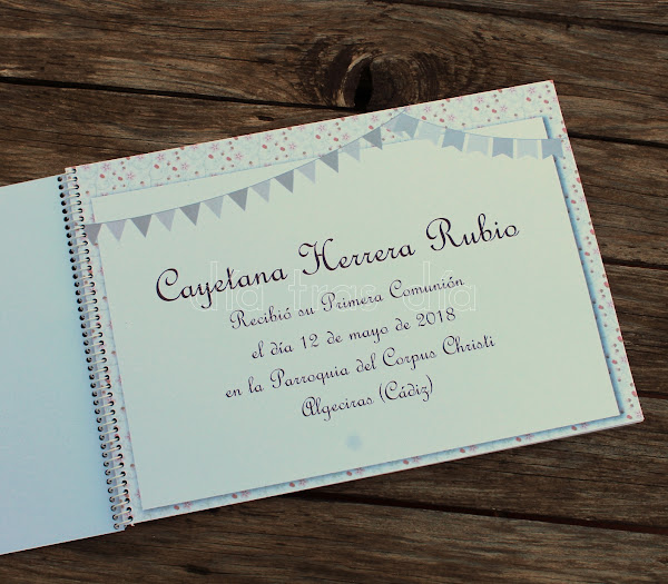 A juego con los recordatorios también me pidió que le hiciera el libro de firmas, para poder conservar en él para un futuro los recuerdos por escrito de ese día, con las dedicatorias de todos los asistentes a su celebración: