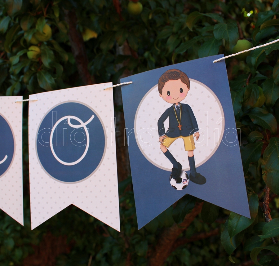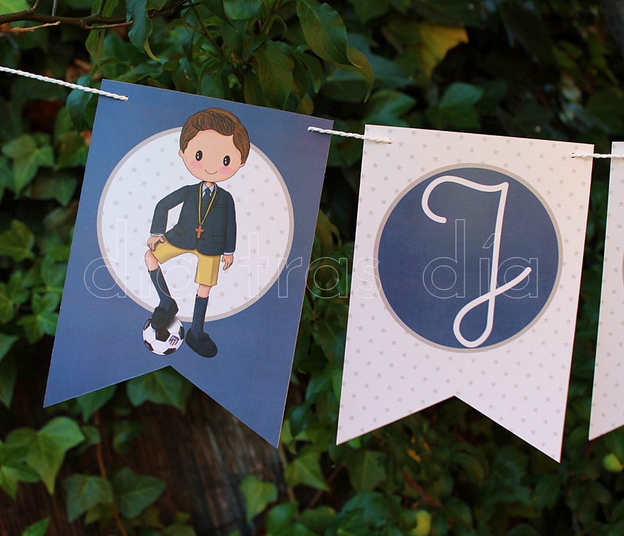Los recordatorios de Jacinto fueron en formato marcapáginas, pero del modelo más alargado. Él también fue con balón de fútbol, pero me dijo Teresa que le gustaría que llevara el escudo del Athletico de Madrid. Pues dicho y hecho: