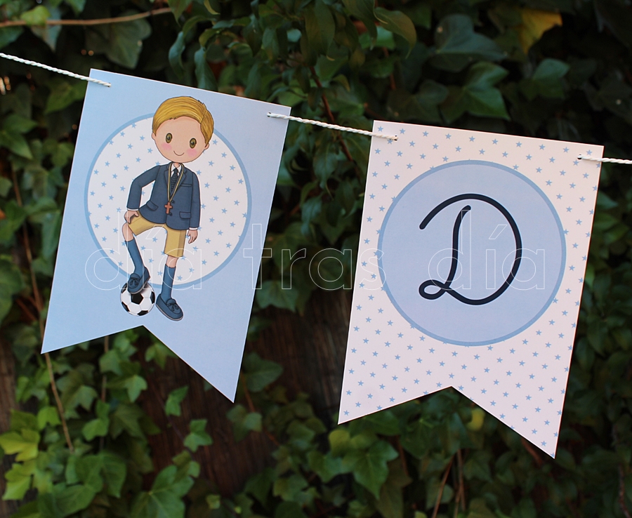 Así es como resultaron los recordatorios de Daniel, para los que Eva eligió un fondo de estrellas en color azul y a Daniel con su balón de fútbol: