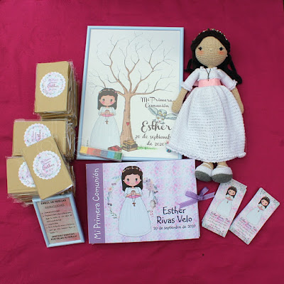¿Qué os han parecido todas estas cosas? Se que Esther y su familia disfrutaron de un día precioso, sobre todo porque por fin llegó el día en que se pudieron reunir con sus familiares para celebrarlo. Y yo aún más que feliz por haber podido poner mi pequeño granito de arena a tan bonita celebración.