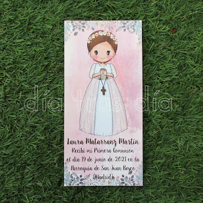 En esta ocasión le toca el turno a los detalles que hice para la Primera Comunión de Laura. Algún tiempo antes de la fecha de la comunión, se puso en contacto conmigo Sonia, clienta fiel de Día tras Día desde hace muchos años.