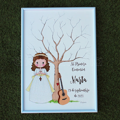 Y el árbol de huellas también fue personalizado con el dibujo de Marta y acompañada por una guitarra:
