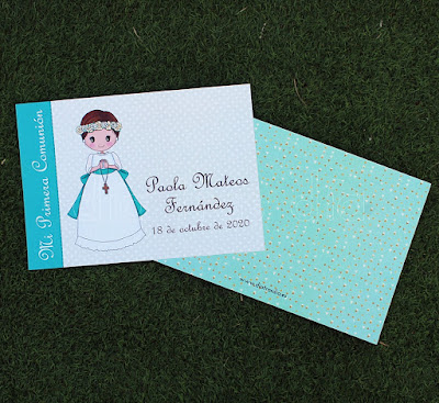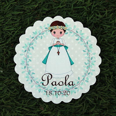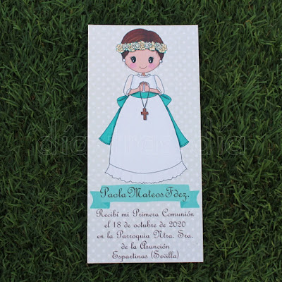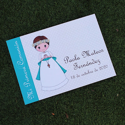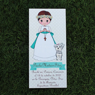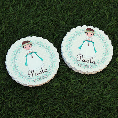 Hoy os quiero enseñar lo que preparé para la Primera Comunión de Paola. Su madre, Rocío, se puso en contacto conmigo después de haber visto los recordatorios que hice para la hija de una amiga suya (que creo que todavía no os he enseñado aún si es que se me acumula el trabajo, jeje)