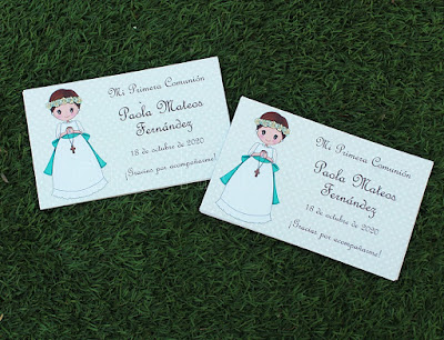 Le gustó la idea de que se pudieran personalizar los detalles con el dibujo de la niña de Primera Comunión a semejanza de la protagonista de la celebración. Y así fue como me encargó varios detalles con el dibujo personalizado.