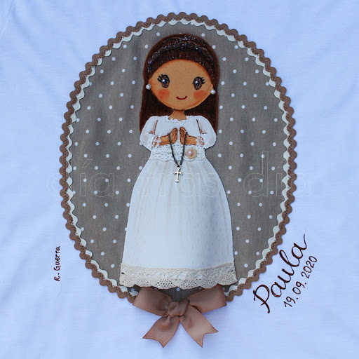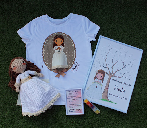 También hice para ella una camiseta personalizada, a partir de las fotos que me enviaron de ella con su vestido de Primera Comunión: