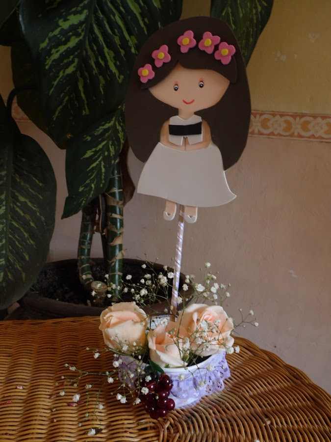 La Primera comunión, es un ritual sacramental de la Iglesia católica, por medio del cual una persona participa por primera vez de la Eucaristía recibiendo la comunión (recibir el cuerpo y la sangre de Jesucristo). Para nosotros los padres, familiares y amigos, es un día de alegría y para ese día tan especial mi blog se une al blog El Rincon de Ana para presentarles un bello diseño para primera comunión, en dos materiales diferentes, foami o goma eva y porcelana fría.