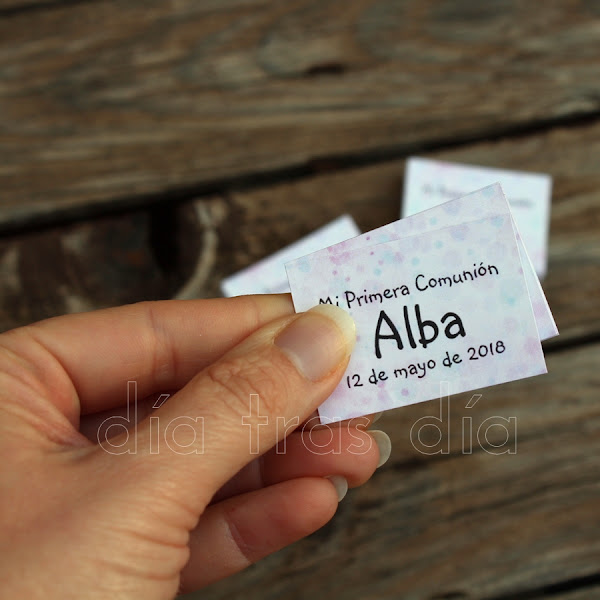 Este verano se puso en contacto conmigo Reyesporque quería que le preparara los recordatorios para la Primera Comunión de sus dos hijos. Reyes conocía mis recordatorios porque su hermana Mª Ángeles me encargó varias cosas para la celebración de comunión de su hija Alba. Pensaba poner por aquí enlace a la entrada con lo que preparé para Alba, pero acabo de descubrir que no llegué nunca a escribir esa entrada. Si es que no tengo remedio…
