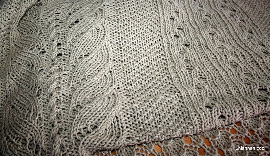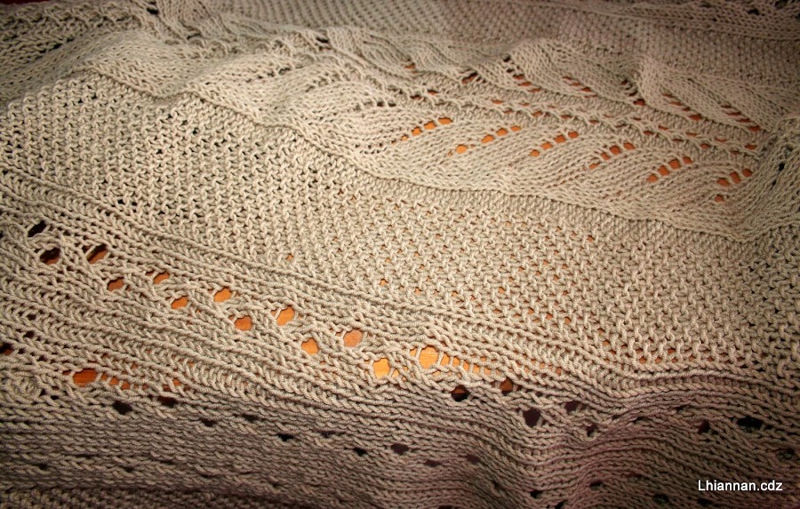 El de color camel merece mención aparte porque me ha encantado el resultado. Está hecho en hilo con un alto porcentaje de algodón muy fácil de trabajar. Es un chal rectangular que ha salido bastante grande y trabajado en varias muestras de punto.
