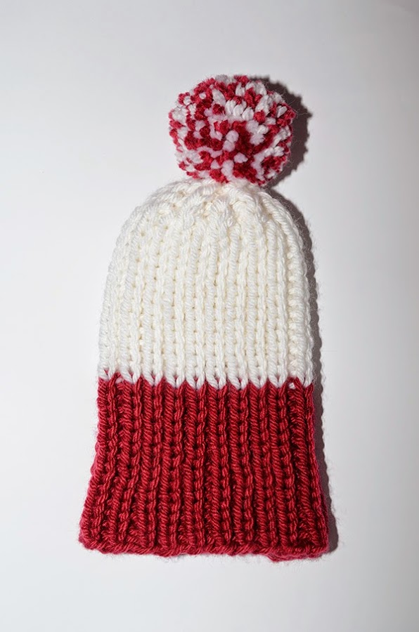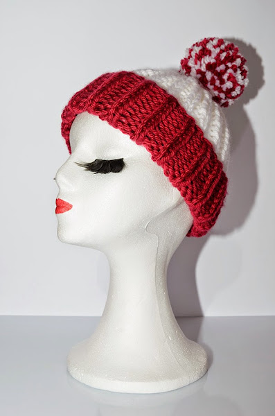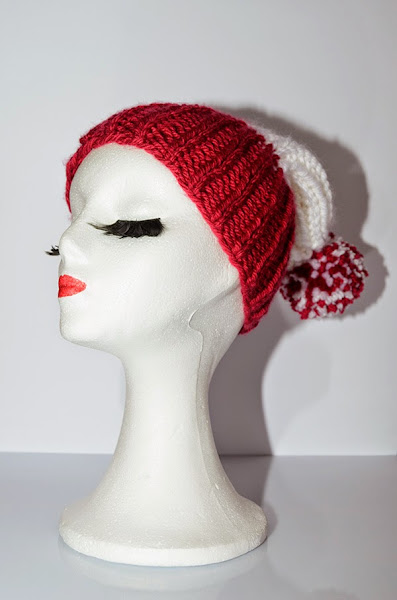 Se puede llevar como lo véis en la foto, pero también, si así os parece muy largo, se puede doblar, para que quede más pegadito a la cabeza y se vea más el pompón, así: