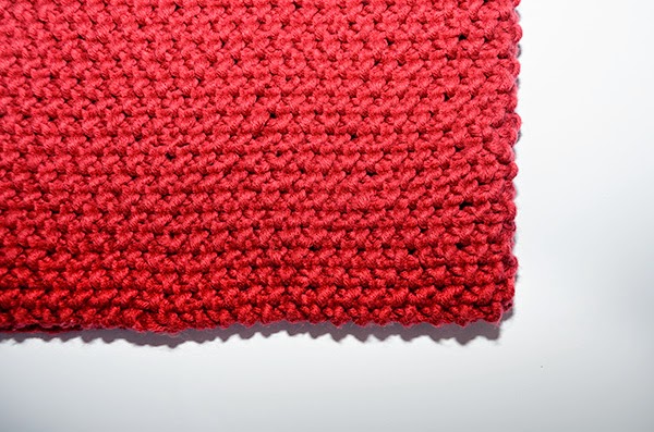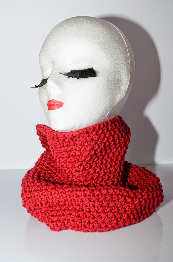 Lo primero que hicimos fue este cuello rojo, hecho con punto de arroz, ¡ala, así a la aventura! Bueno, en realidad primero estuvimos practicando un poco de punto del derecho, punto del revés, etc. Y una vez que la técnica está... ¡manos a la obra!