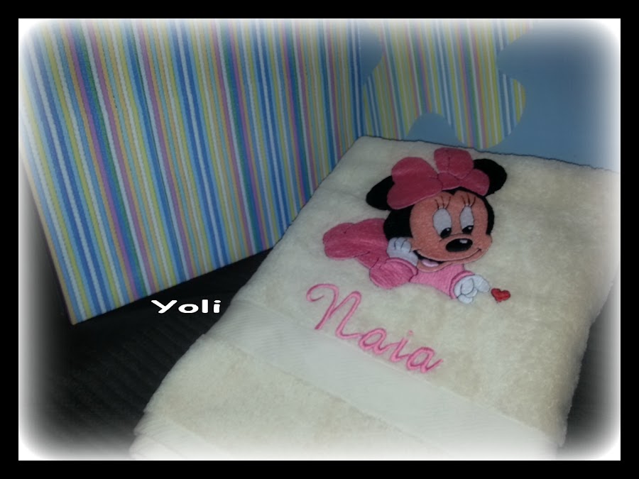 Y no podía faltar algo que ya conocéis la toalla personalizada que bordo mi amatxu. También os dejo otra foto del conjunto completo.