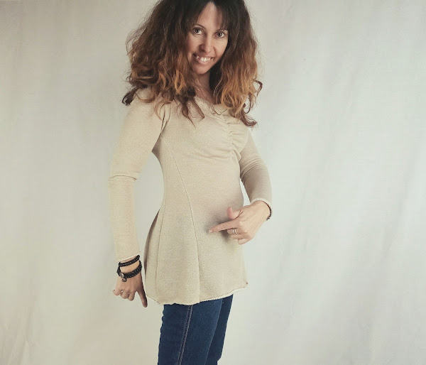 Tengo que decir que es un patrón entallado, muuuy entallado y según que tela, pues va a ser que nó. Corté este punto con un brilli brilli champán que me encanta de Cal Joan, sin contar con la elasticidad (la primera era punto de camiseta muy elástico) y claro, con este que no tiene mucha caída, pues parecía una butifarra de pagés, así que tuve que hacerle un añadido, lo véis?