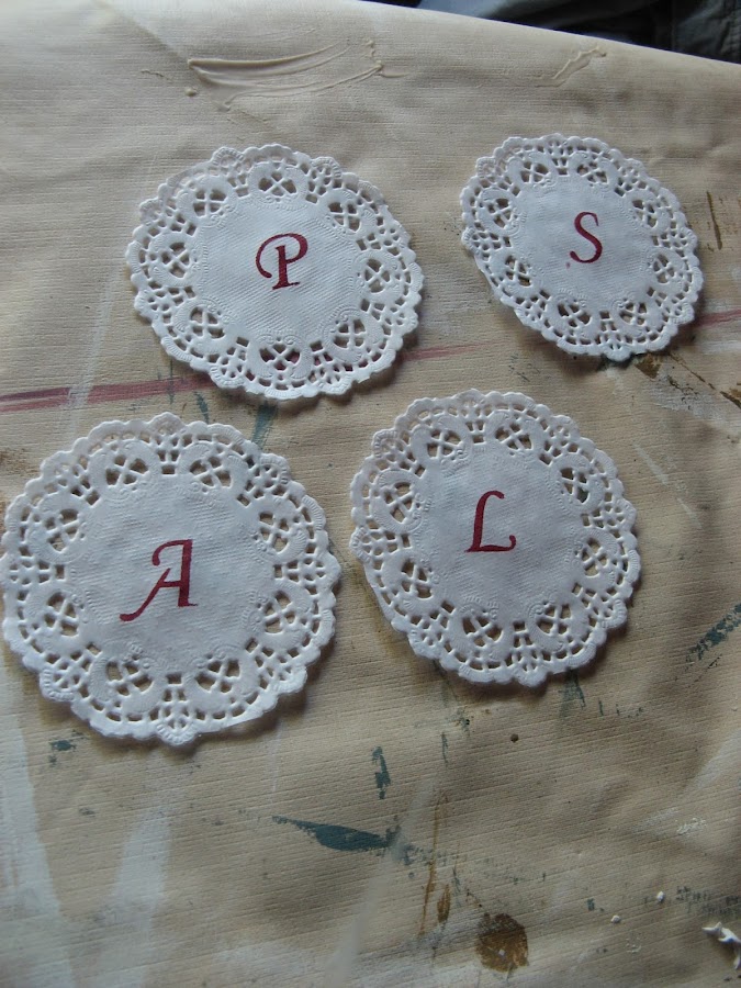 Unas blondas pequeñitas a las que les he puesto tambien nuestras iniciales, pero de color rojo