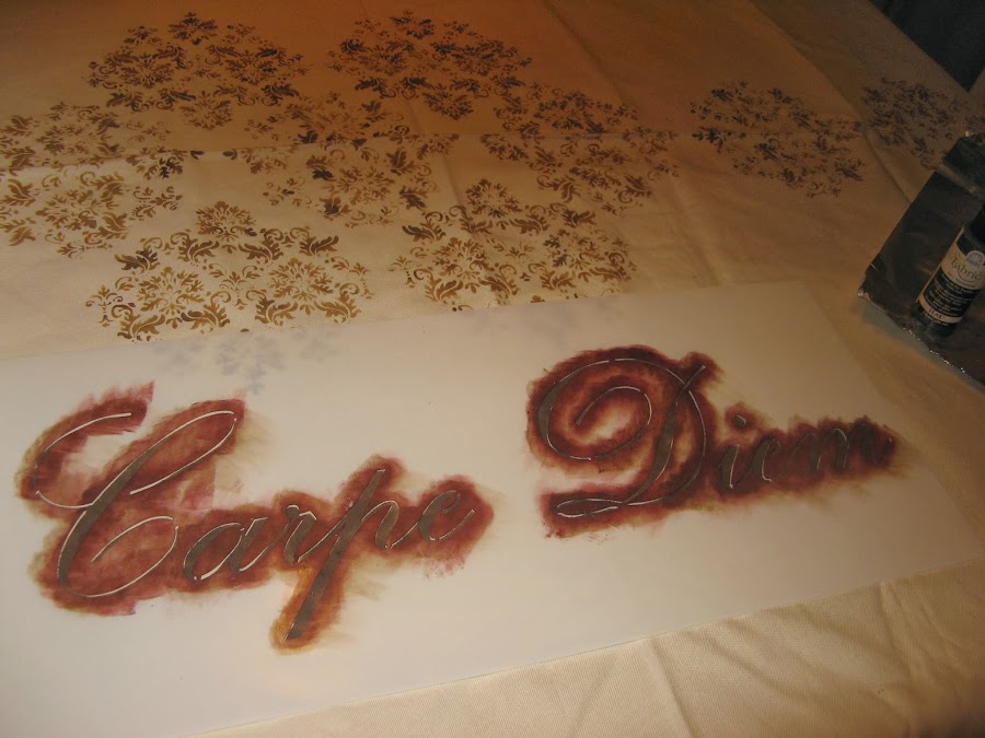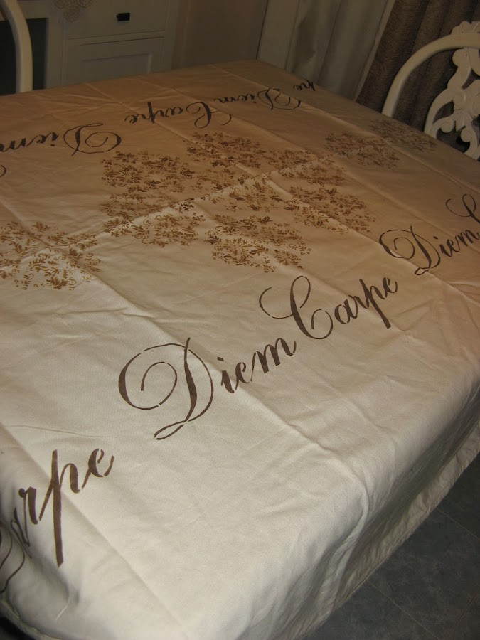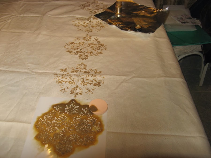 Llevo mucho tiempo queriendo pintar un mantel con plantillas y tenía uno preparado, asi que esta semana he estado haciendolo a ratitos.