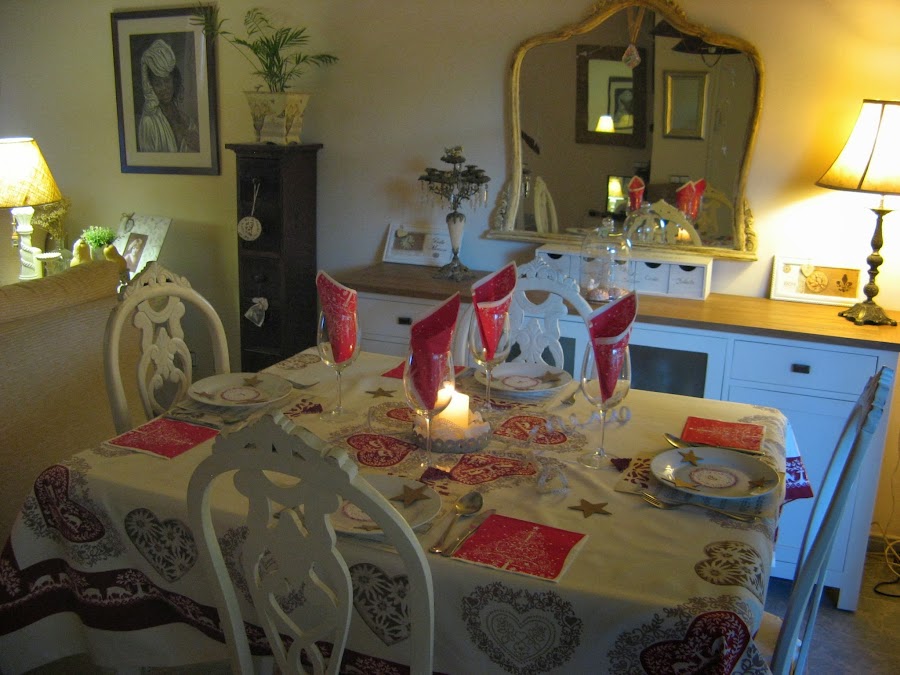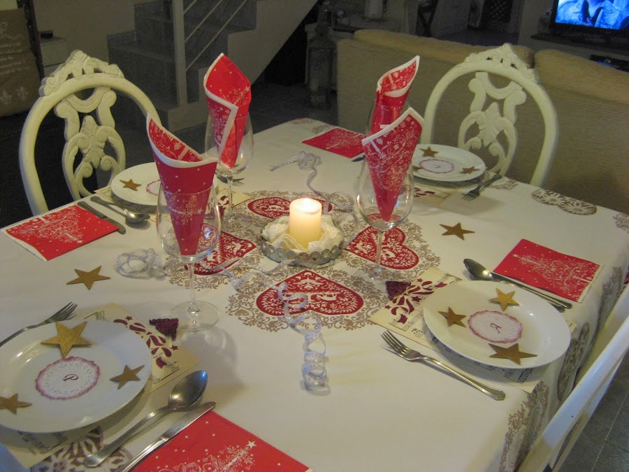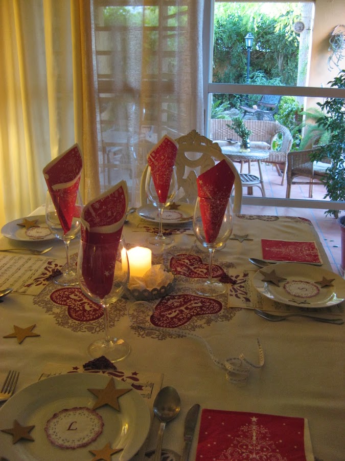 La segunda mesa que he preparado ha estado condicionada por los tonos rojos del mantel. No me gusta el rojo, pero como color para la Navidad tiene un pase jaja.