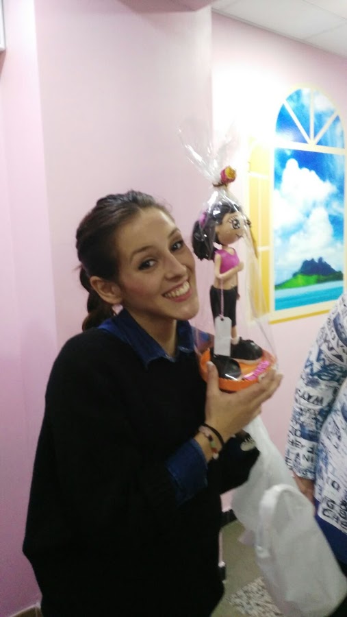 Laura daba clases de zumba, sus alumnas le han hecho una fiesta de despedida y le han regalado una de mis fofuchas. Me han dicho que es una gran maestra, la echaran mucho de menos,