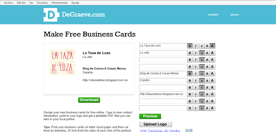 Bueno espero que os venga muy bien esta web, para ahorrar dinero y haceros vuestras propias tarjetas de visita.