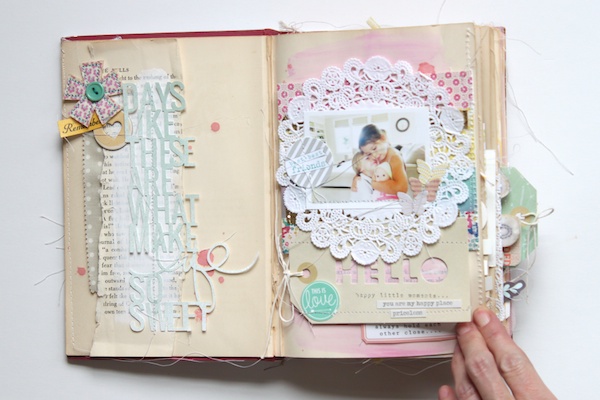 En esta ocasión había que hacer un scraplift de unas páginas seleccionadas por Creascrapea de Ana Maria y Bailandoconscrap de Cristina del libro alterado "Happy little moments" de Stephaniemakes.