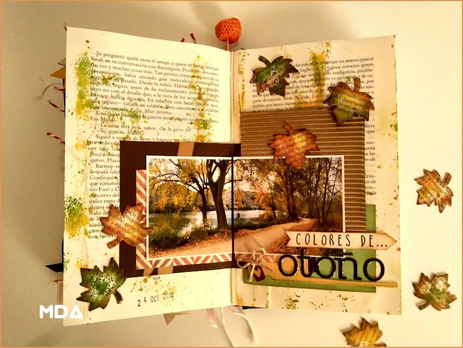 El libro que he usado las tenía en negro y cómo no quería modificarlas mucho me limité a pegar un papel en blanco y negro de una colección de Pebbles, algunos adornos y la palabra en madera "Inolvidable" para el título.