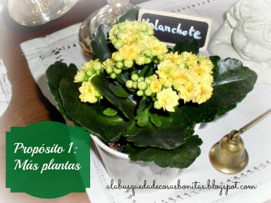Y cuando pasé por el Lidl y vi este kalanchote, con sus flores amarillas a medio abrir, se me ocurrió que este podía ser mi propósito número 1 para el 2015: más plantas en casa, y además, cuidándolas... Que muchas veces se me olvida regarlas, o las riego cuando no lo necesitan. Y sobre el kalanchote ya me he informado: al ser una suculenta, no necesita mucho riego.