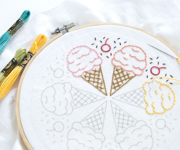 Ice cream cone mandala, free embroidery pattern by Mollie Johanson on The Spruce
