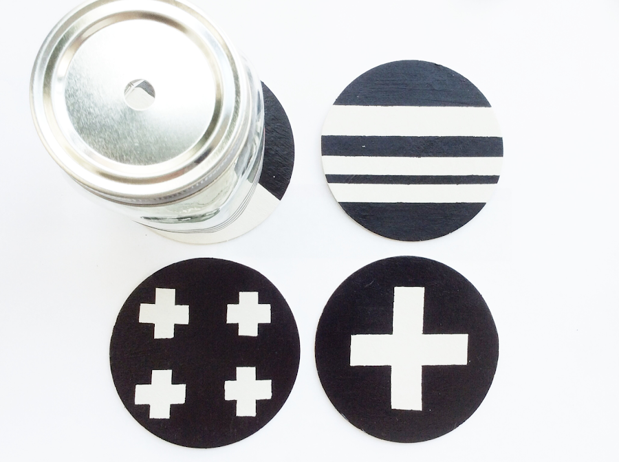 Yo he creado unos posavasos de inspiración nórdica. Con muchas cruces y rayas en blanco y negro, para variar jajaja. Lo que he utilizado es: unos posavasos de cartón de ikea, pintura blanca de La Pajarita, pintura negra de efecto pizarra para poder escribir los nombres de la gente, Washi y un spray fijador de pintyplus tech.