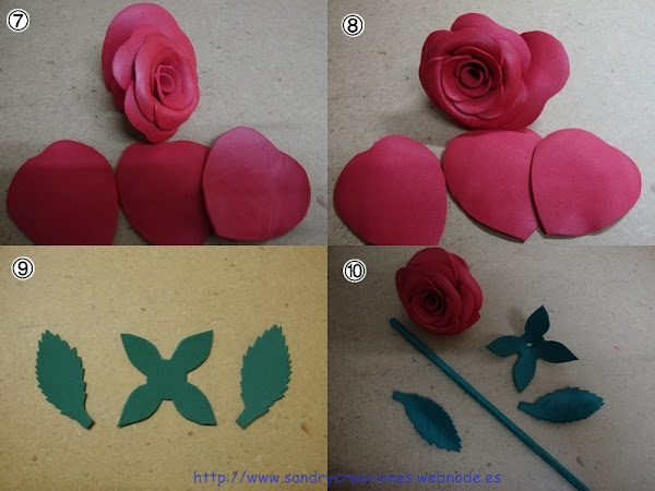 Imágenes 9 y 10 - En ellas se puede ver las hojas y las diferentes partes de la rosa a punto para montarlas.
