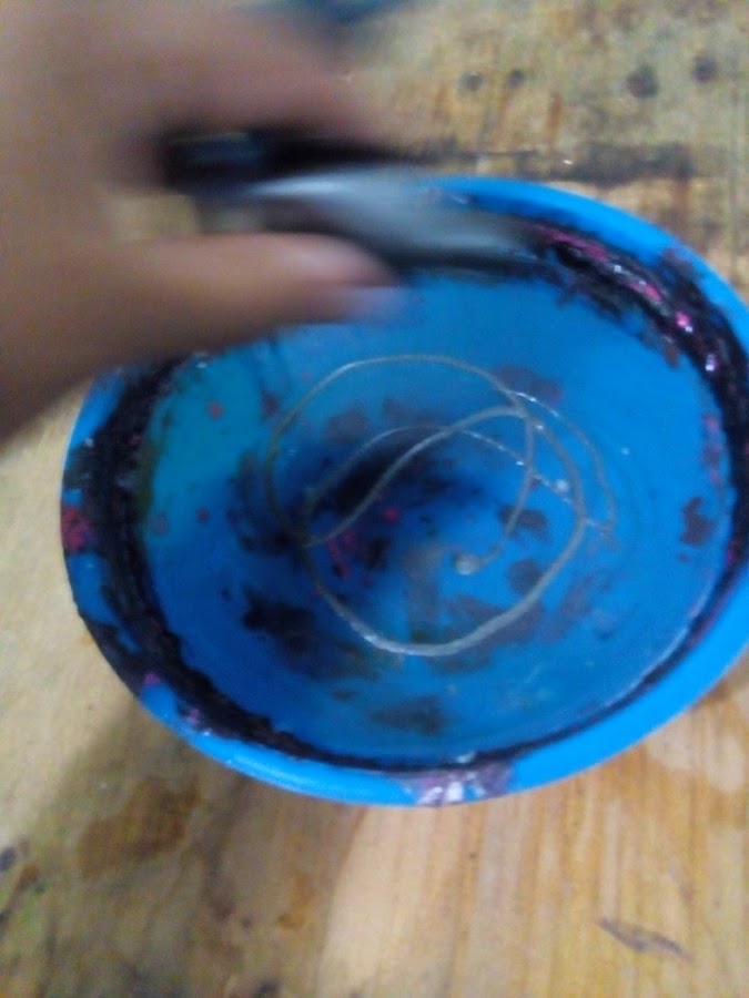 Ahora esto vamos a hacerlo un poco rapidito, si no la pintura se nos va a secar y no va a quedar la mezcla que queremos.