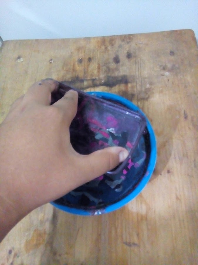 Pero anteeeees... PRECAUCIÓN: Si no quieres que tus manos queden hechas una desgracia (como las mías) ponte unos guantes, usa unas pinzas o algún otro utensilio para sumergir el protector.