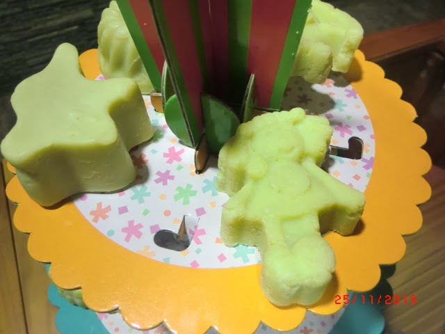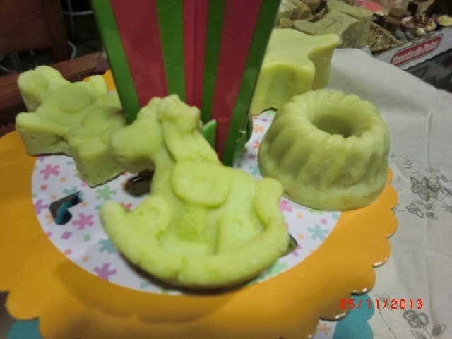 Con una textura más rústica los que llevan agua de rosas. Utilicé muchos moldes variados porque tenían que ser divertidos unos y menos infantiles otros. :)