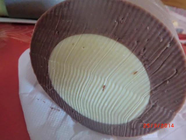 Antes de cortar sí se apreciaban los trocitos de coco rallado. Pero pensé que se verían más :S