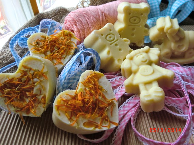 Un jabón que nunca falla porque es apto para todo el mundo, sobre todo pensado para niños y pieles sensibles. Con leche de avena y oleato de caléndula. Y con agua de rosas o sin ella. SIN AROMAS NI COLORANTES AÑADIDOS Con una textura más rústica los que llevan agua de rosas. Utilicé muchos moldes variados porque tenían que ser divertidos unos y menos infantiles otros. :)