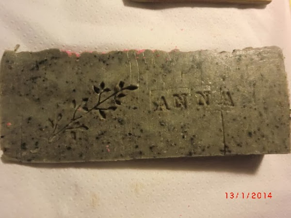 Además que me ha servido para hacer unas pruebas ya que llevaba meses sin jabonear y no podía poner en práctica... aunque los dibujos se ven mejor en jabones claros y lisos, podréis comprobar que a pesar de lo jaspeado de éste se ven todos perfectamente.