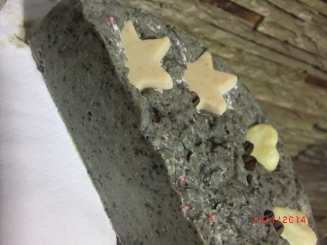 Lleva mucho café y también molido, café de Colombia ! Además de leche de avena, karité y más cositas que ya os contaré....