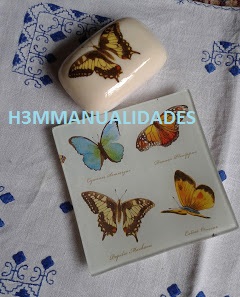 Los más pequeños también se pueden usar como jaboneras, junto a jabones decorados con la misma técnica. Tienen motivos muy variados: hay gatitos, dibujos geométricos, flores... Seguro que encuentras alguno que te guste. Y si no, allí mismo me puedes encargar el jabón y plato con un motivo más personalizado. Mira los que hice la vez anterior: