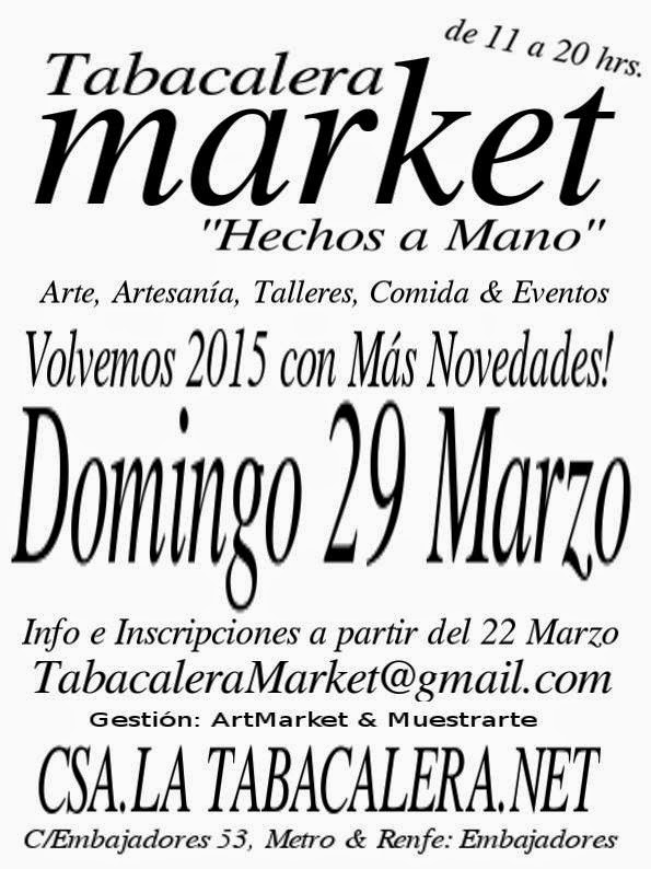 Estoy muy contenta y quiero compartirlo con vosotros. El domingo día 7 de septiembre voy a participar en el mercadillo de Tabacalera Market. Me encantaría poder saludaros personalmente, el horario es de 11 a 20 horas, y la dirección es en la Calle Embajadores, 53 (Madrid). Yo estaré con mis clásicas cestas, bolsas, mochilas, fundas para todo, y alguna creación nueva hecha para la ocasión. Este mer ...