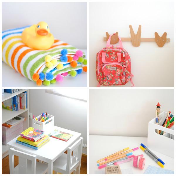 El mismo rincón en el que damos rienda suelta a la imaginación y destapamos la "caja de manualidades de mamá", la que esconde washitape, rotuladores, papeles... un auténtico paraíso para ella.