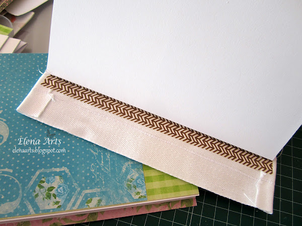 Ahora podemos coser a máquina cada lomo a la cinta. Entre los lomos podemos pegar unas piezas de washi tape, para añadir más juego a nuestra libreta.