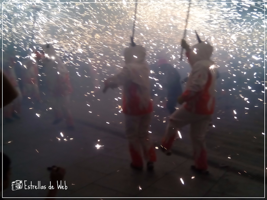 El correfoc es una manifestación cultural popular catalana y valenciana, en la que un grupo de personas disfrazadas o no de demonios desfilan por las calles de un municipio corriendo, bailando y saltando entre fuegos artificiales.