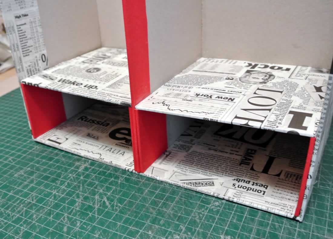 Paso 5. Cortamos 6 cartones, los forramos y los pegamos sobre los cartones que hacen de apoyo.