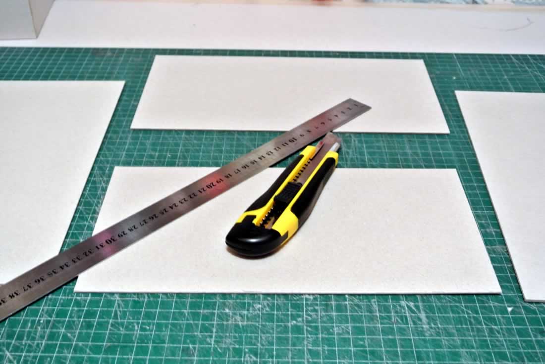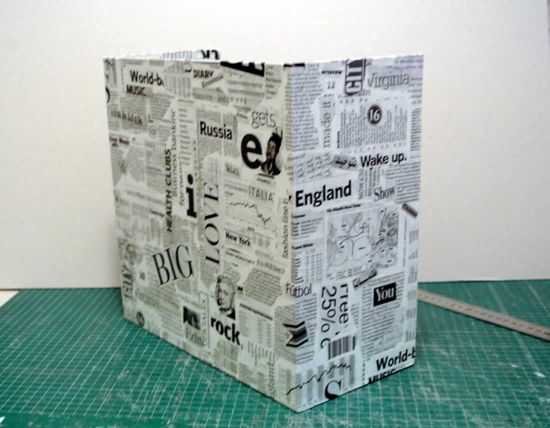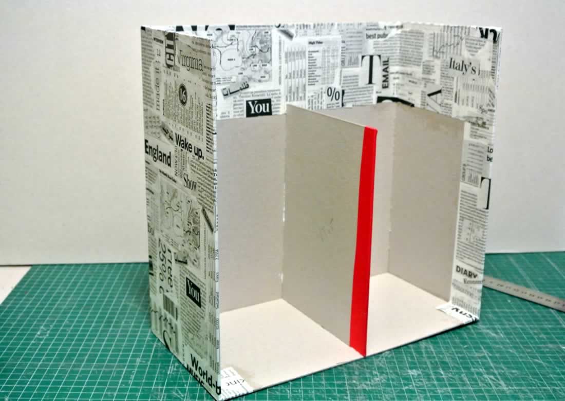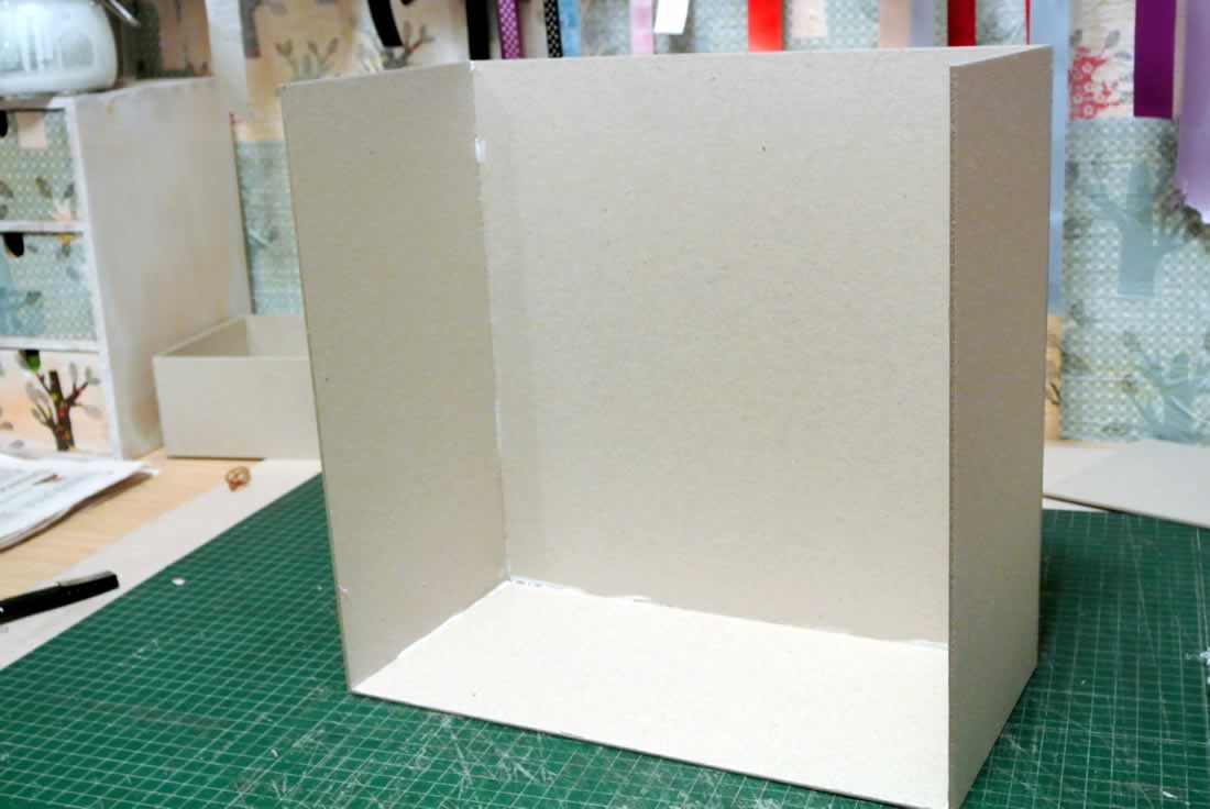 Paso 1. Hacemos una caja sin un lateral y forramos solo el exterior. (Cartón de 2,5mm)