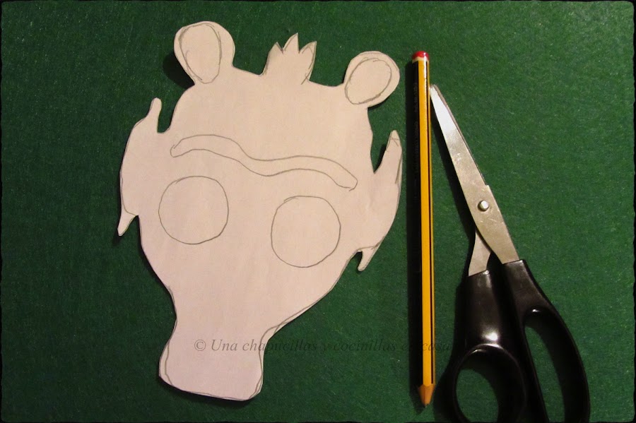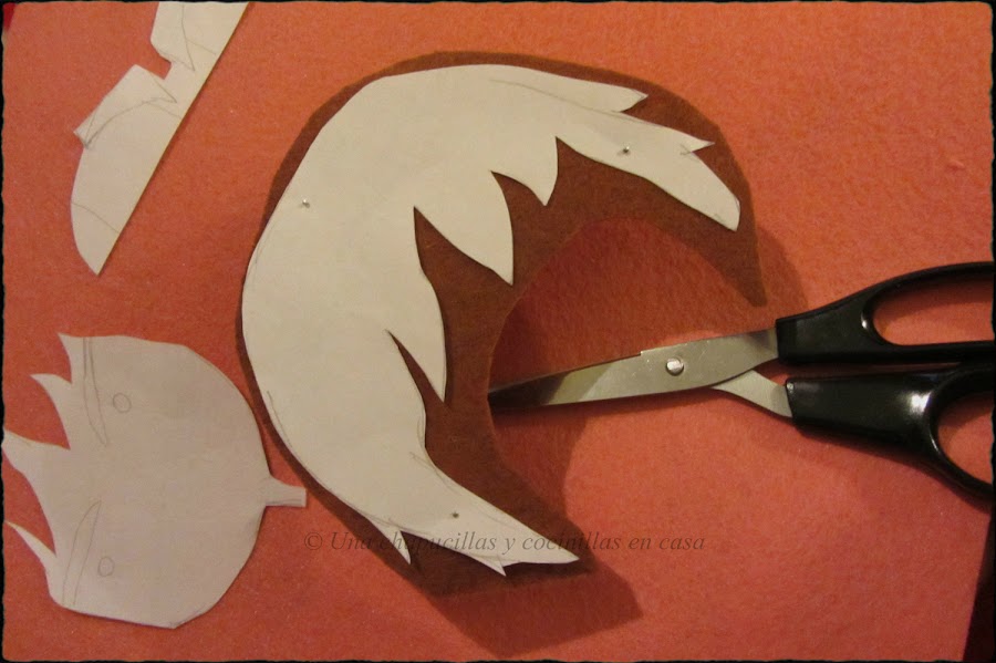 Recorto las partes de papel, haciendo de patrón sujetándolo con alfileres, para recortar el fieltro