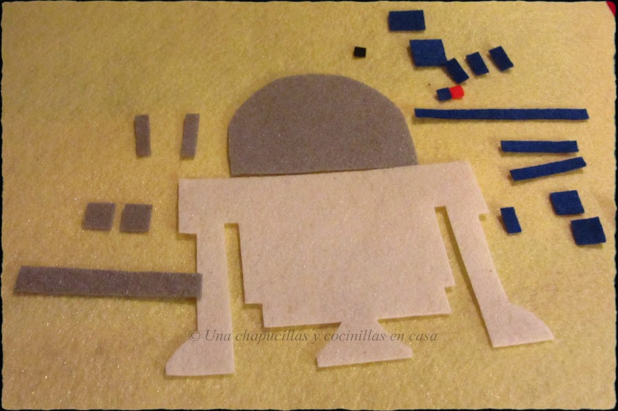 Recortar las partes de fieltro y sujetarlas con alfileres para ayudanos a coser sujentadolo bien para que no se mueva.